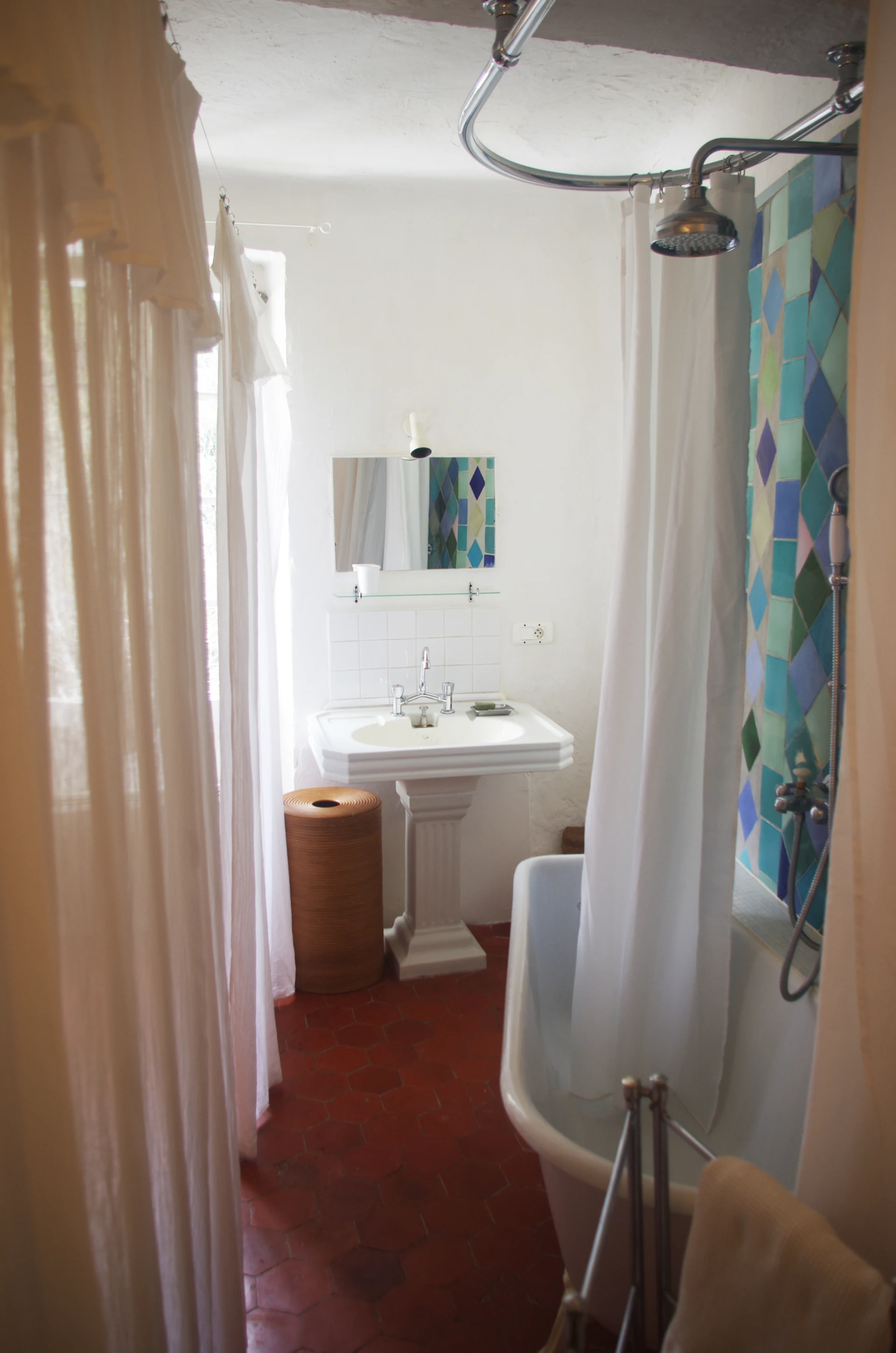 Au 1ᵉʳ étage, une chambre avec son coin salle de bains, ainsi qu’une deuxième chambre mansardée et lumineuse.