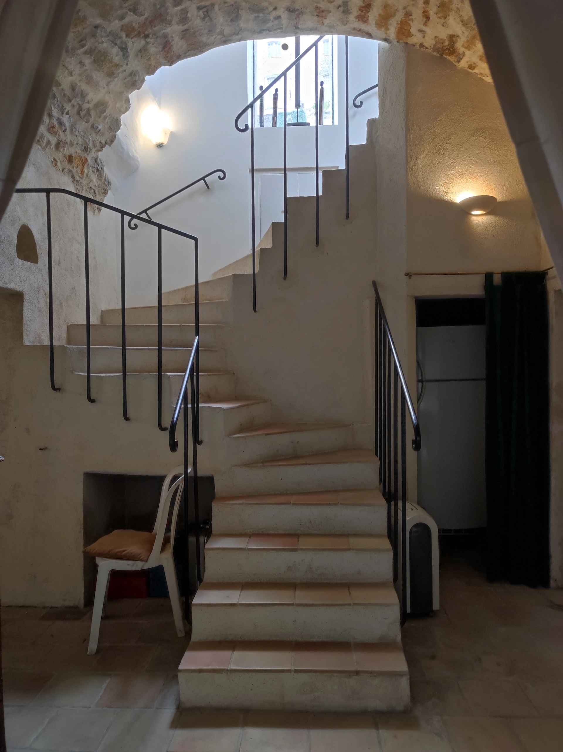 Il est composé d’un salon, d’une salle à manger, de 2 ou 3 chambres, de 2 salles de bains et douche, de 2 toilettes, et au rez-de-jardin, d’un ancien pressoir aménagé en un spacieux séjour avec ses deux anciennes cheminées et son piano à queue. Le tout donnant sur une terrasse et un jardin.