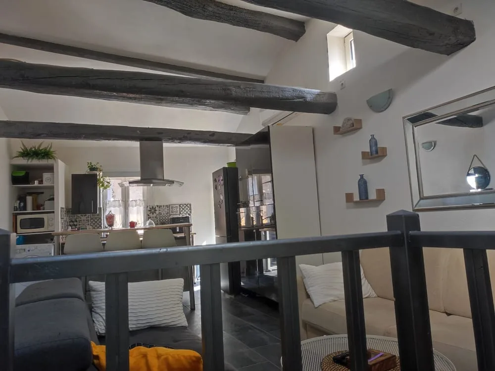 Je vous propose un charmant appartement en bon état, lumineux, offrant un séjour avec sa cuisine équipée.