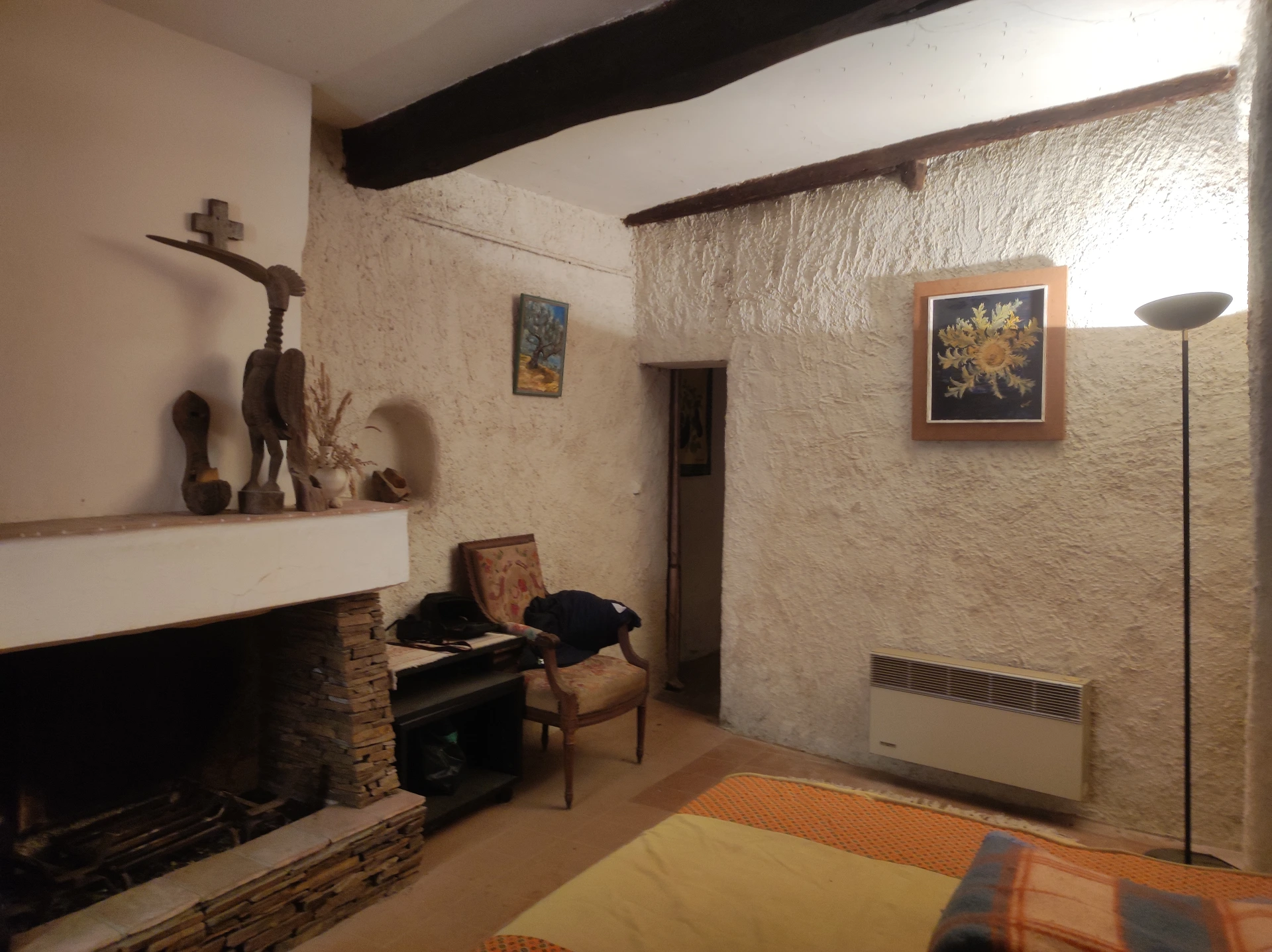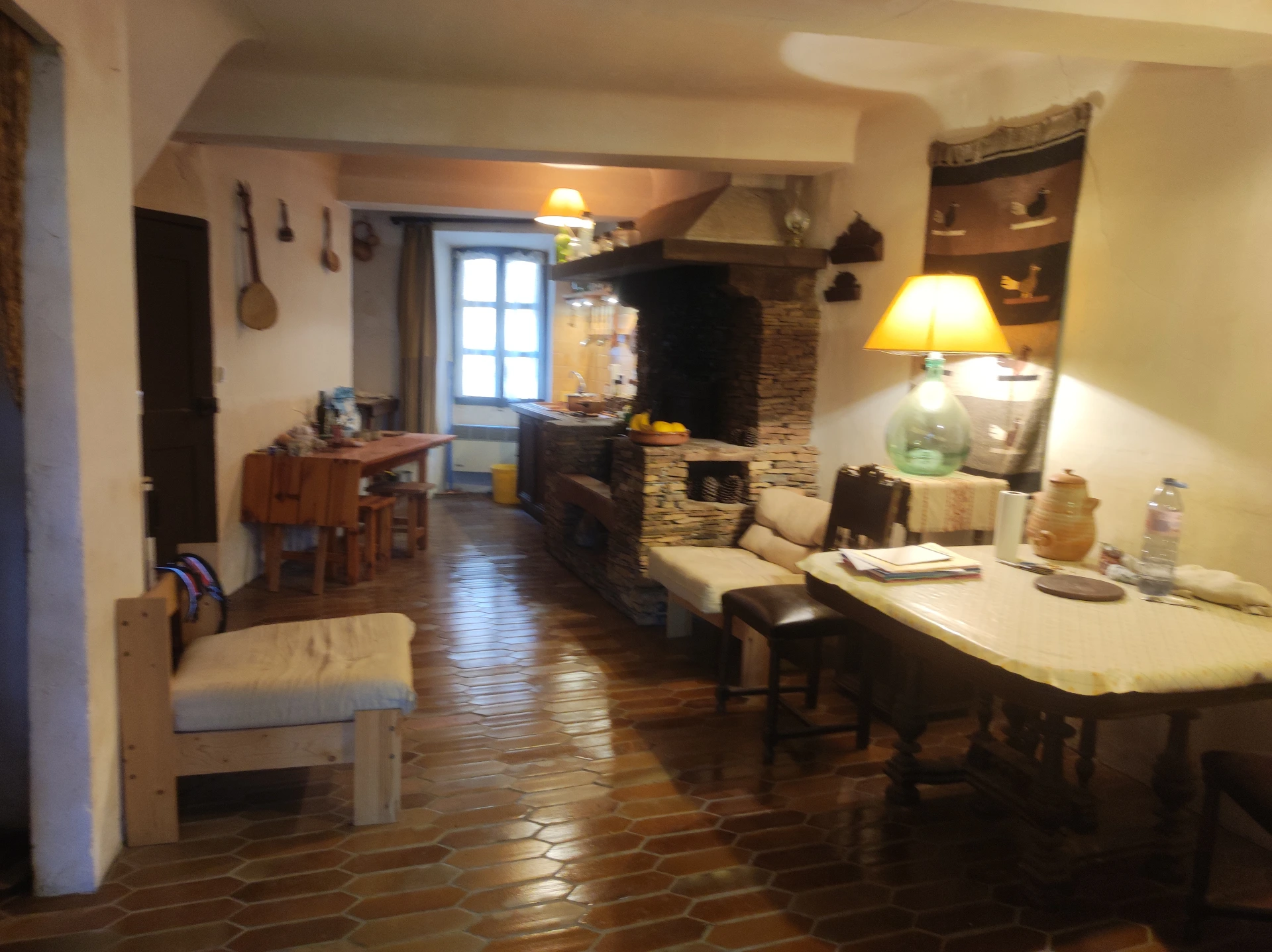 À l'étage, un salon cheminée, une kitchenette donnant vers le jardinet, un autre coin salon cheminée aménagé en chambre, un cabinet de toilette.