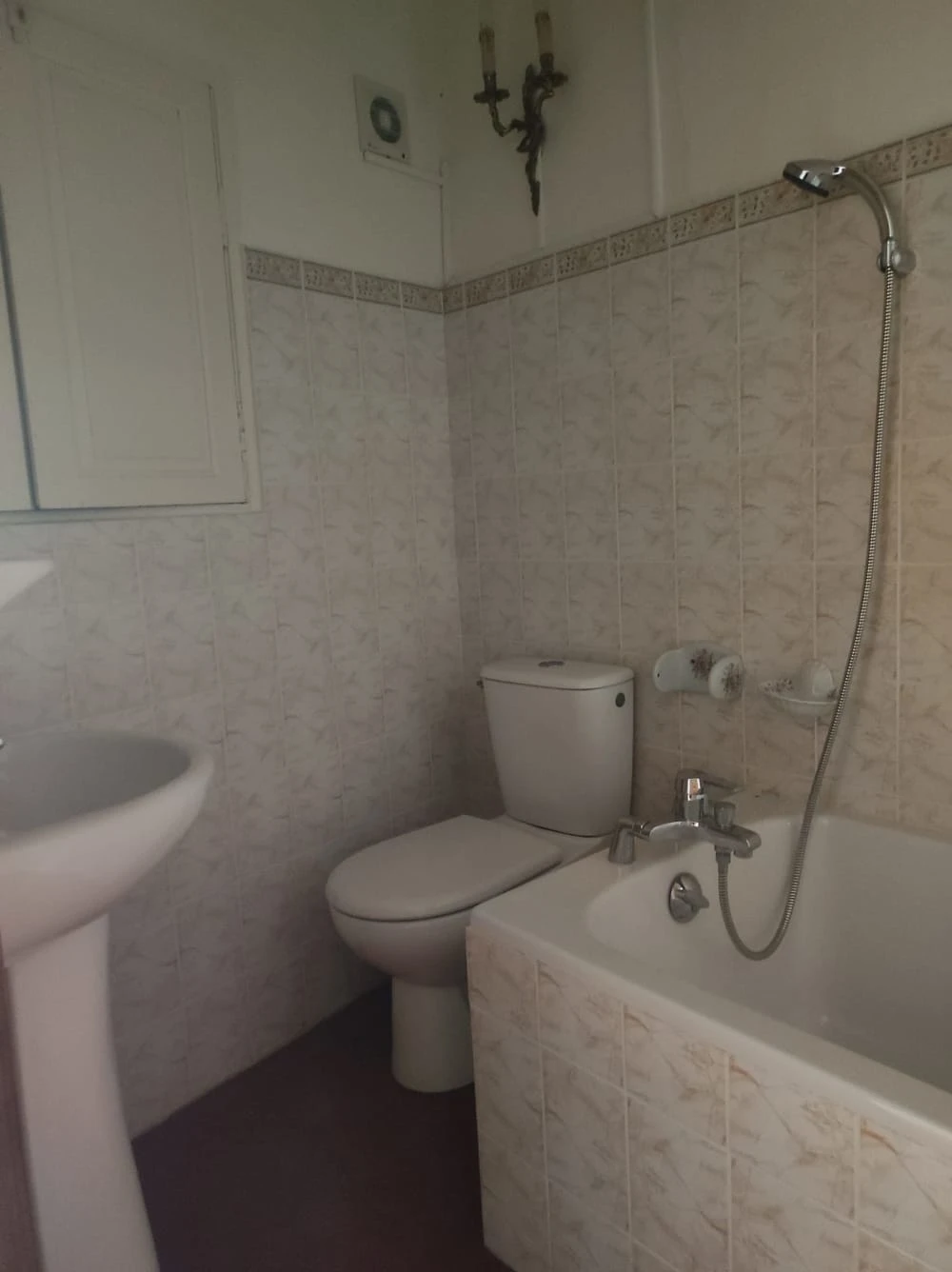 Jolies tomettes au sol, porte de placard ancienne.