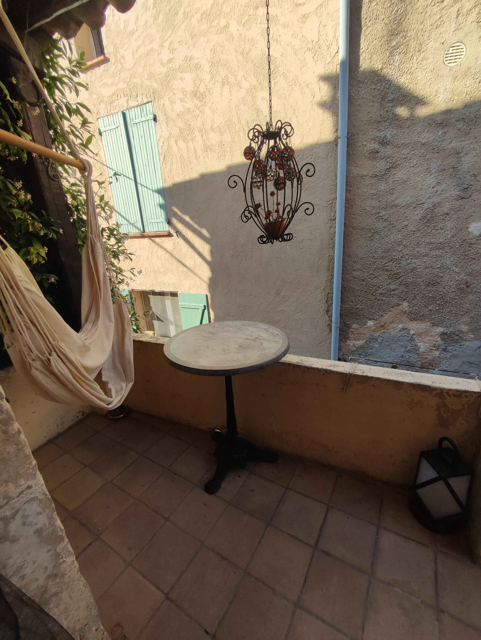 L’habitation est située au 1ᵉʳ étage, accessible par un escalier extérieur donnant sur un balcon.
